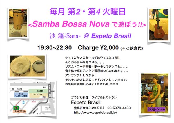 【毎月第2・4火曜日】〜Samba Bossa Novaで遊ぼう!!〜@Espeto Brasil(大塚)
